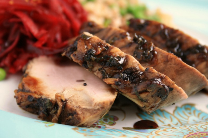 Grilled Pork Tenderloin Glazed with Bourbon and Molasses