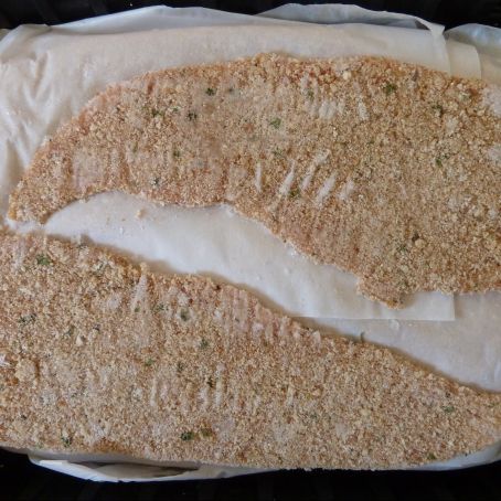 TIME SAVER: As pictured I bread multiple cutlets at once and freeze them between layers of parchment paper. Now you can quickly take them out of the freezer, thaw them in the microwave and have supper ready in a jiffy!