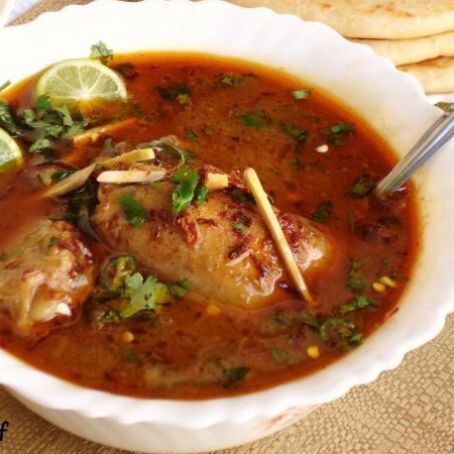 Heat your oil in a deep pan (preferably non-stick), then add the onions and fry until lightly golden. Addd the ginger and garlic pastes and stir until aromatic. Next, add the chicken and stir-fry on medium high heat for about 10 minutes. Sprinkle the Nihari powder and stir well. Next, add the water and salt, give everything a stir and lower the heat. Cover the pot and allow to cook on VERY LOW gentle heat for an hour.
