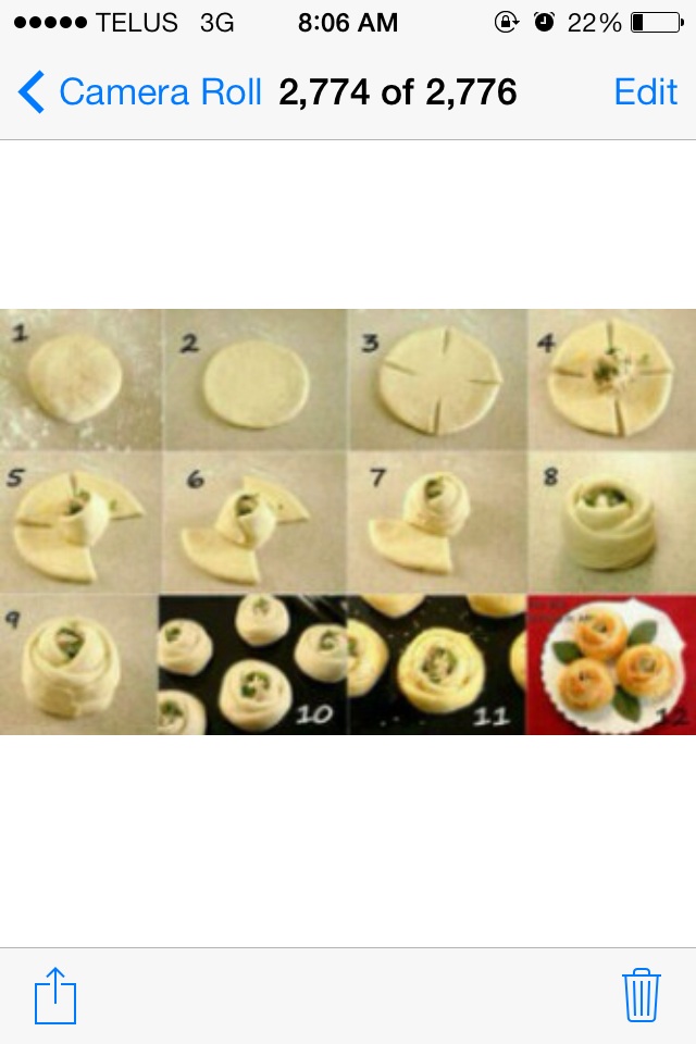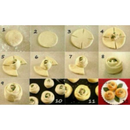 Cut four slits on corner of each circle and place ball in centre, fold as for roses.
