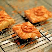 Pretzel Crusted White Chocolate Brownies with Salted Caramel Drizzle