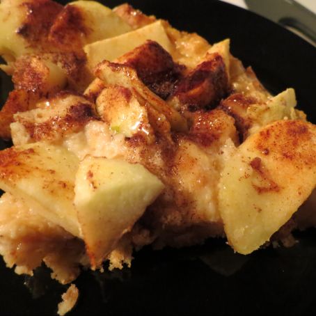 Butter and flour bottom and sides of your 9" baking dish. Spread dough in the dish. Place apple slices on top. Sprinkle with remaining sugar and cinnamon.