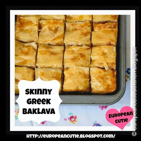 Here is my healthier version of the traditional Greek Baklava, its got less sugar and less fat but is still delicious! I remember as a child my mother used to make this perfectly for my greek stepfather..came out perfect everytime.. heres a skinnier version.. enjoy!
