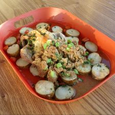 - Put shredded chicken breast, tomato sauce, chives, and mexican spice mix in a bowl and mix together.