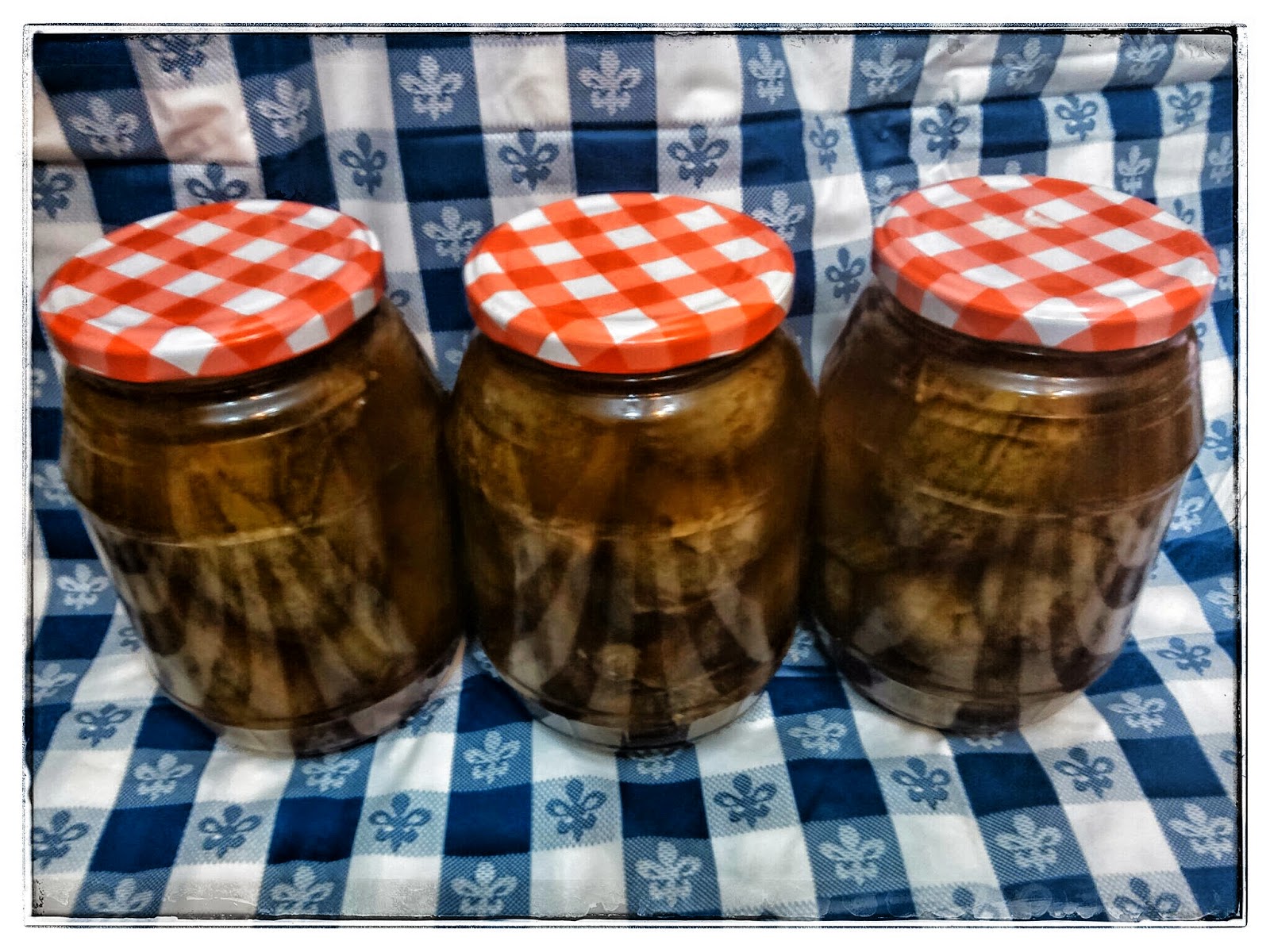 We put a pan on the fire with water and when it starts boiling we getting the boats until the water does not cover the tops and cook for 10 to 15 minutes, repeat this operation until all have them ready, let cool and store in our pantry.