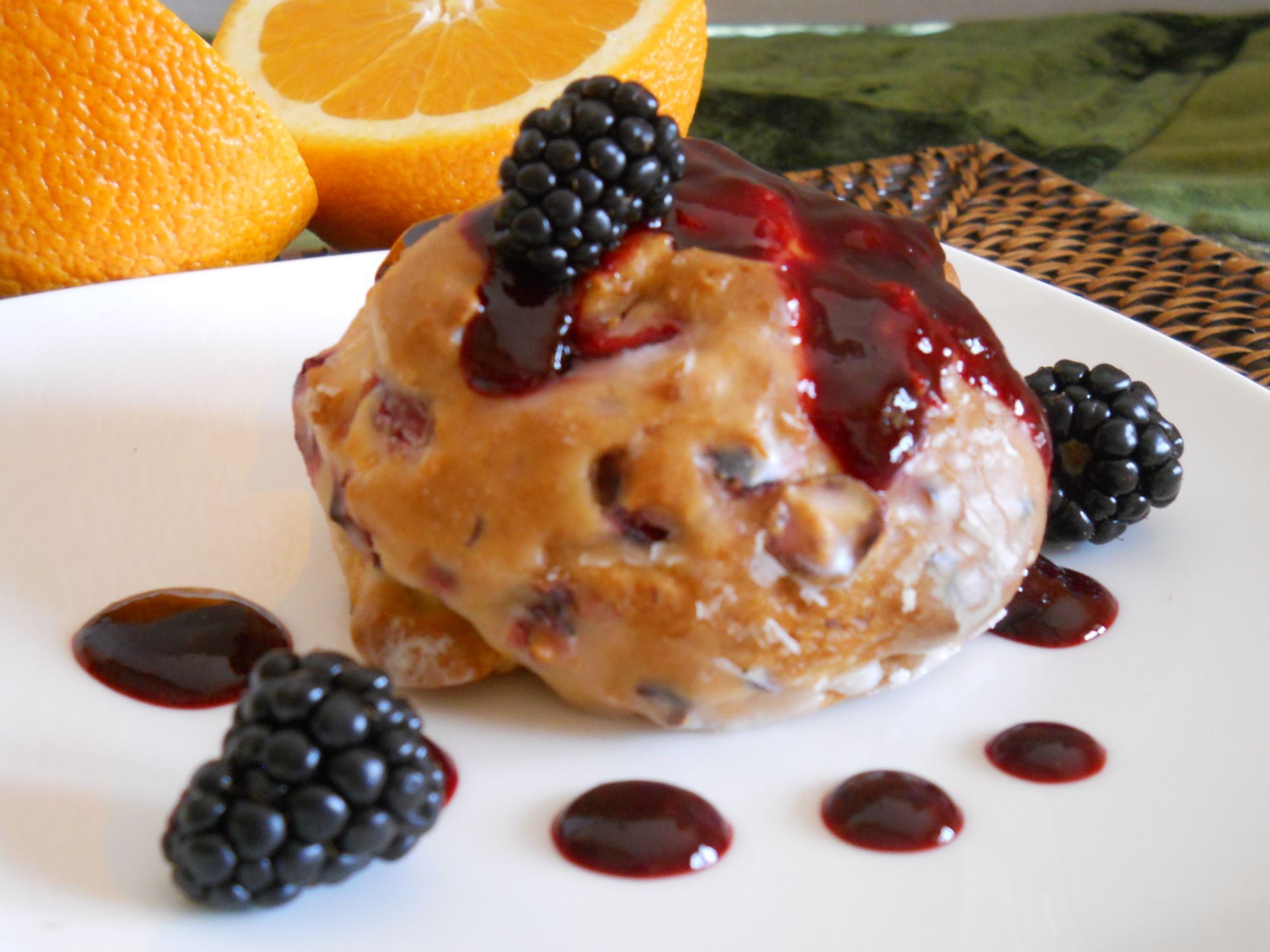 This delicious biscone is a brunch item I make every year just before Christmas, it's fluffy and decadent with a blackberry coulis to finish for a lovely presentation.