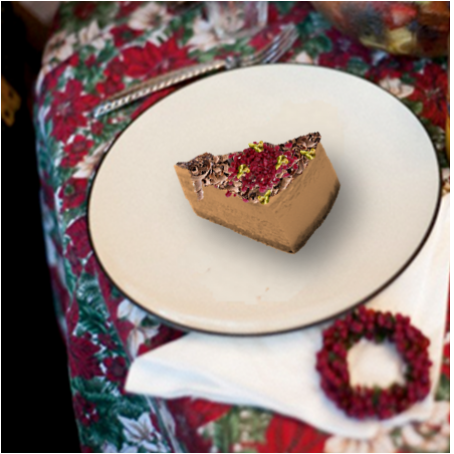 The flavors of a traditional gingerbread have been transformed into a colorful cheesecake.