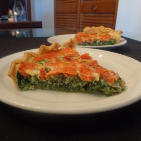 Smoked salmon and spinach quiche. To bring out nice flavor, I used almond milk and added cream cheese.