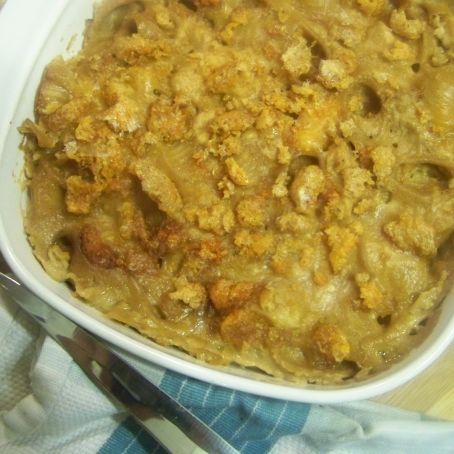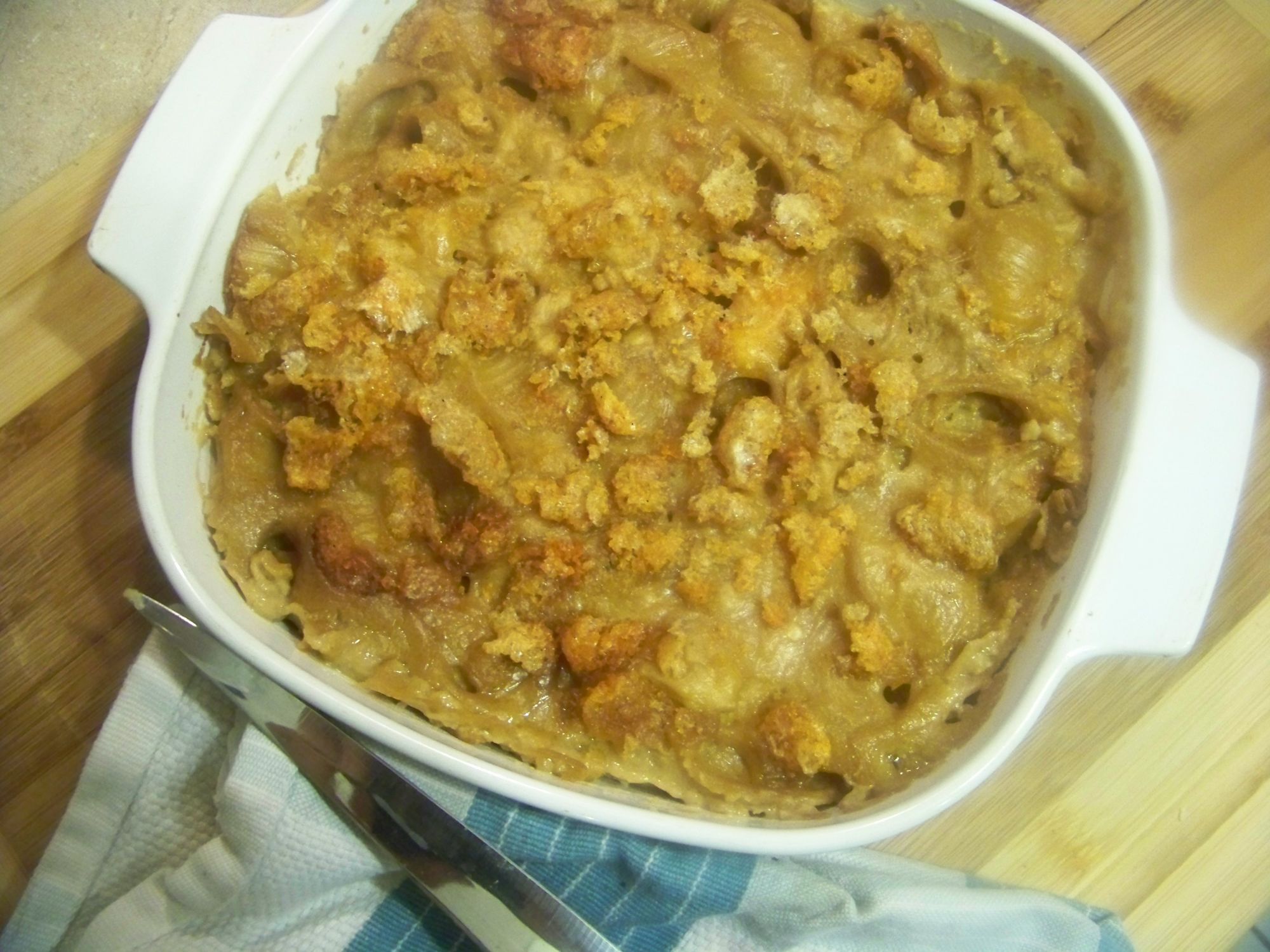 In bowl, combine Parmesan cheese and crushed pork rinds. Top the macaroni mixture evenly with the pork rind cheese mixture. Bake in preheated oven until heated through and bubbly, about 20 minutes.
