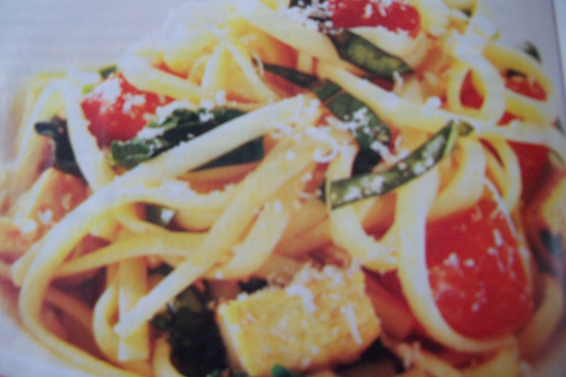 Toss pasta with tomato and tofu mixture 1/3 c. reserved cooking water to loosen pasta. Serve sprinkled with parmesan cheese.