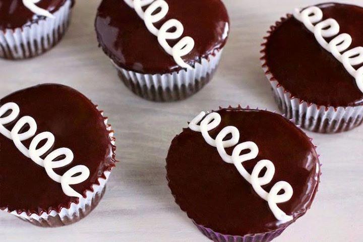 Take the cupcakes, plunge tip end of larger filled pastry bag into the center of the cupcake. Press and fill roughly about 2 tablespoons full or just until you feel the cupcake swell. Repeat with remaining cupcakes.