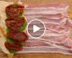 - Layer bacon slices on a chopping board.