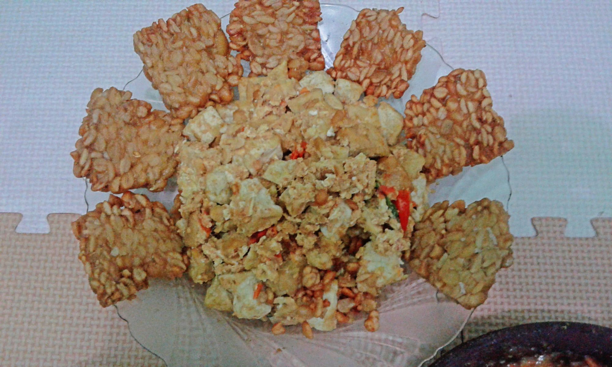 put the slice of tofu and tempe to the flavor and stir until be spread evenly