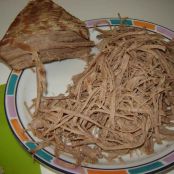 When the meat is ready, keep the broth apart, take the meat shred it into thin strands with your hands (see the picture above). You can also boil the beef the day before you make the "carne mechada": it will be easier to shred it.