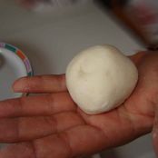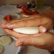 While the meat is cooking, you can make the arepas. Take a handful of dough in your hand and shape some little balls weighing about 60 grams each one.