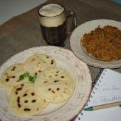 The arepa is the typical flatbread of Venezuela. Arepas are made from a dough of white cornflour, water, salt and a bit of oil, then cooked on the "budare", a sort of big cast iron pan. They could be made also with yellow cornflour, but in that case they are named "arepas amarillas". Arepas are simple and fast to make; they substitute bread or can be a whole meal: in fact, you can fill them with everything you want. Now we are going to propose a typical filling of Venezuela, "carne mechada" (shredded beef). Otherwise, you can stuff them with ham and cheese or, for example, a filling made of roasted chicken, onion, garlic, avocado, lime, mayonnaise (these arepas are called "reina pepiada"). To make arepas you need a particular flour: this is "Harina P.A.N" (patented brand of Venezuela since 1954) precooked white cornflour that you can easily find in ethnic food shops.