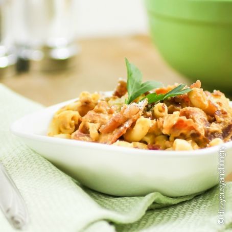 Macaroni with a creamy pumpkin sauce and tasty chunks of bacon make this dish a filling and delicious family hit!