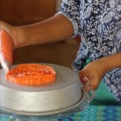 Add gel color to desired amount and shade. Using Wilton tip 125, work from the middle in opposite circular motions.