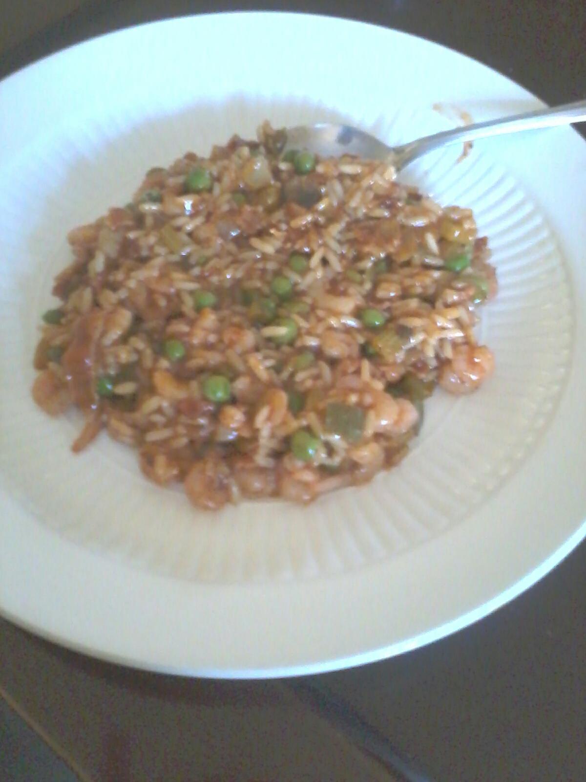 A yummy combination of shrimp, bacon, rice, mushrooms & vegetables